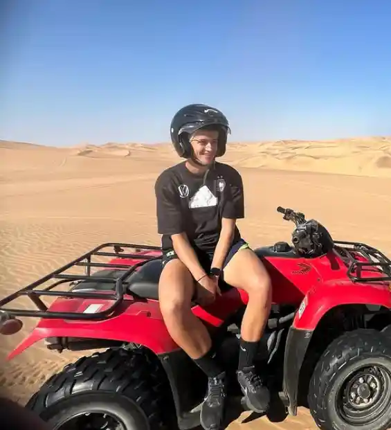 Anna loves to travel and try out new activities — like riding through the sand dunes or sliding down them on a board.