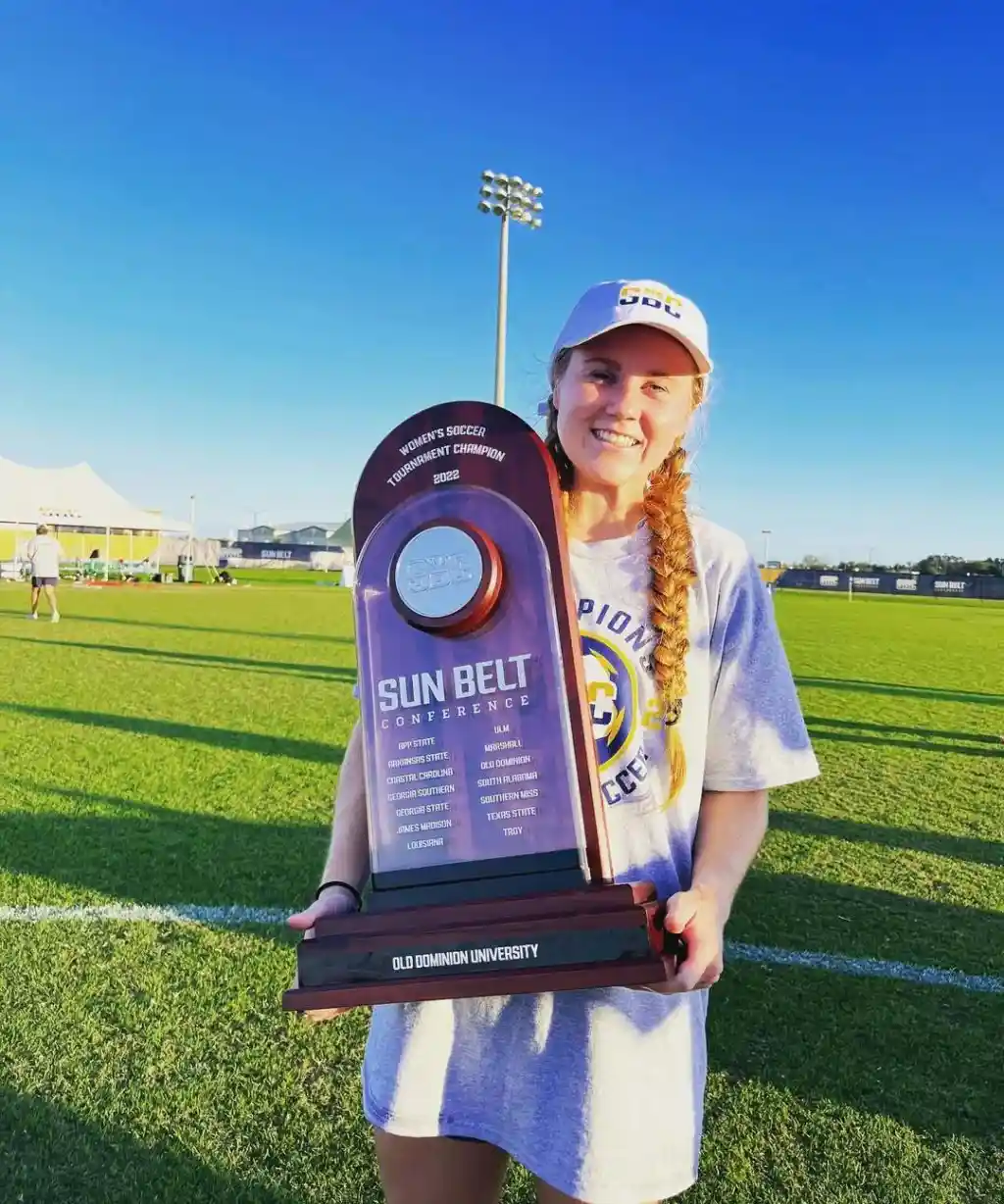 She spent sever years playing college football in the USA (Old Dominion University, Norfolk).
