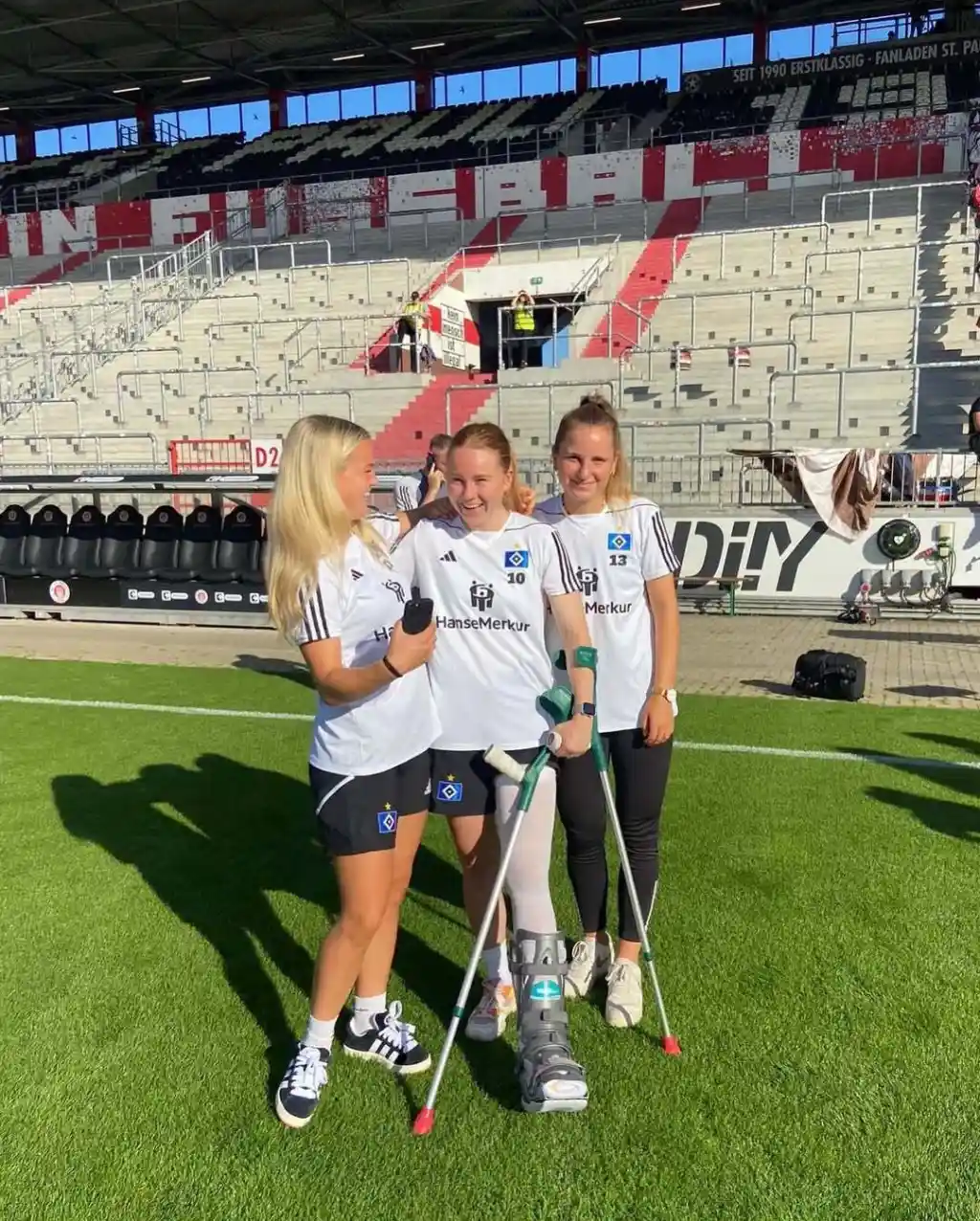 Besides football, she also works as a marketing student and HSV employee, combining her studies, job, and sport perfectly.